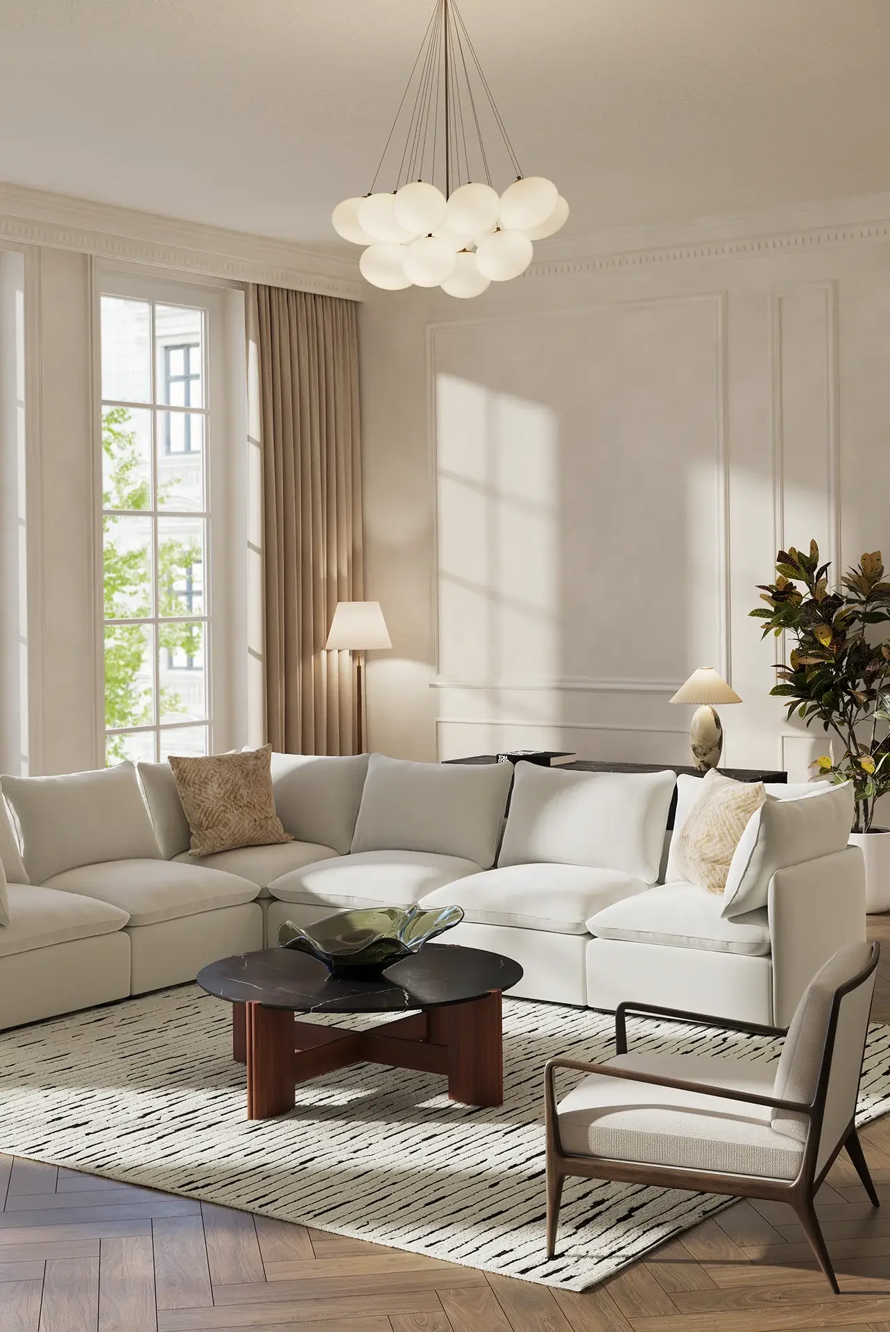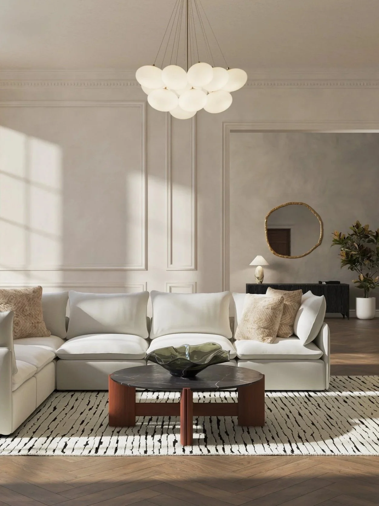This project explores a contemporary residential apartment interior defined by architectural restraint, subtle tonal contrast, and controlled natural light. Developed as a personal concept study, the space investigates how modern furniture and refined material selection can coexist within a structured architectural envelope.