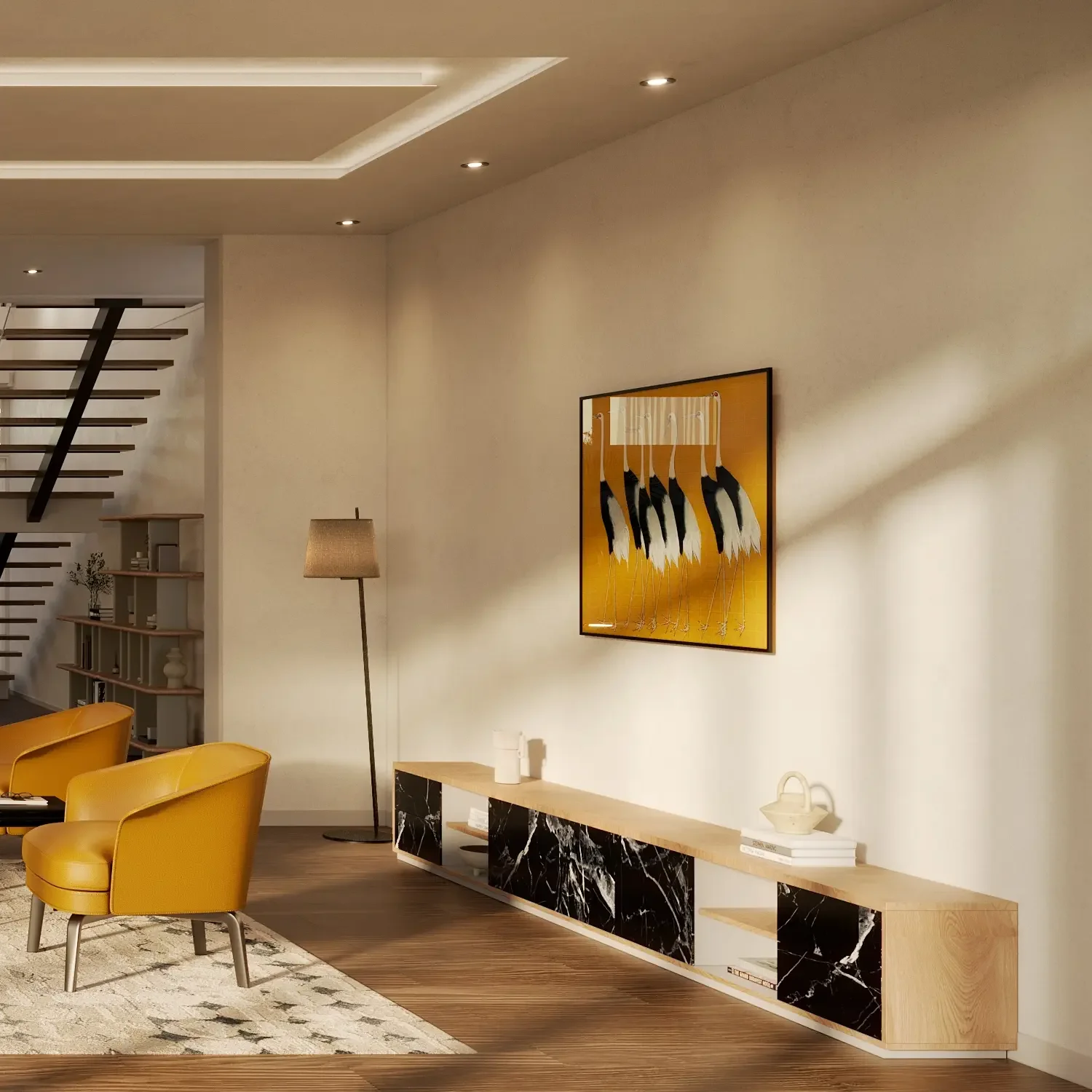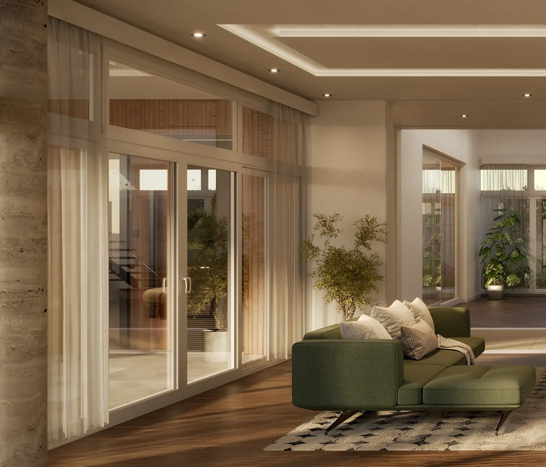 Traan Space is a personal interior study developed from a built architectural reference. The project explores how a completed architectural shell can be reinterpreted through a new material language, furniture strategy, and lighting atmosphere.