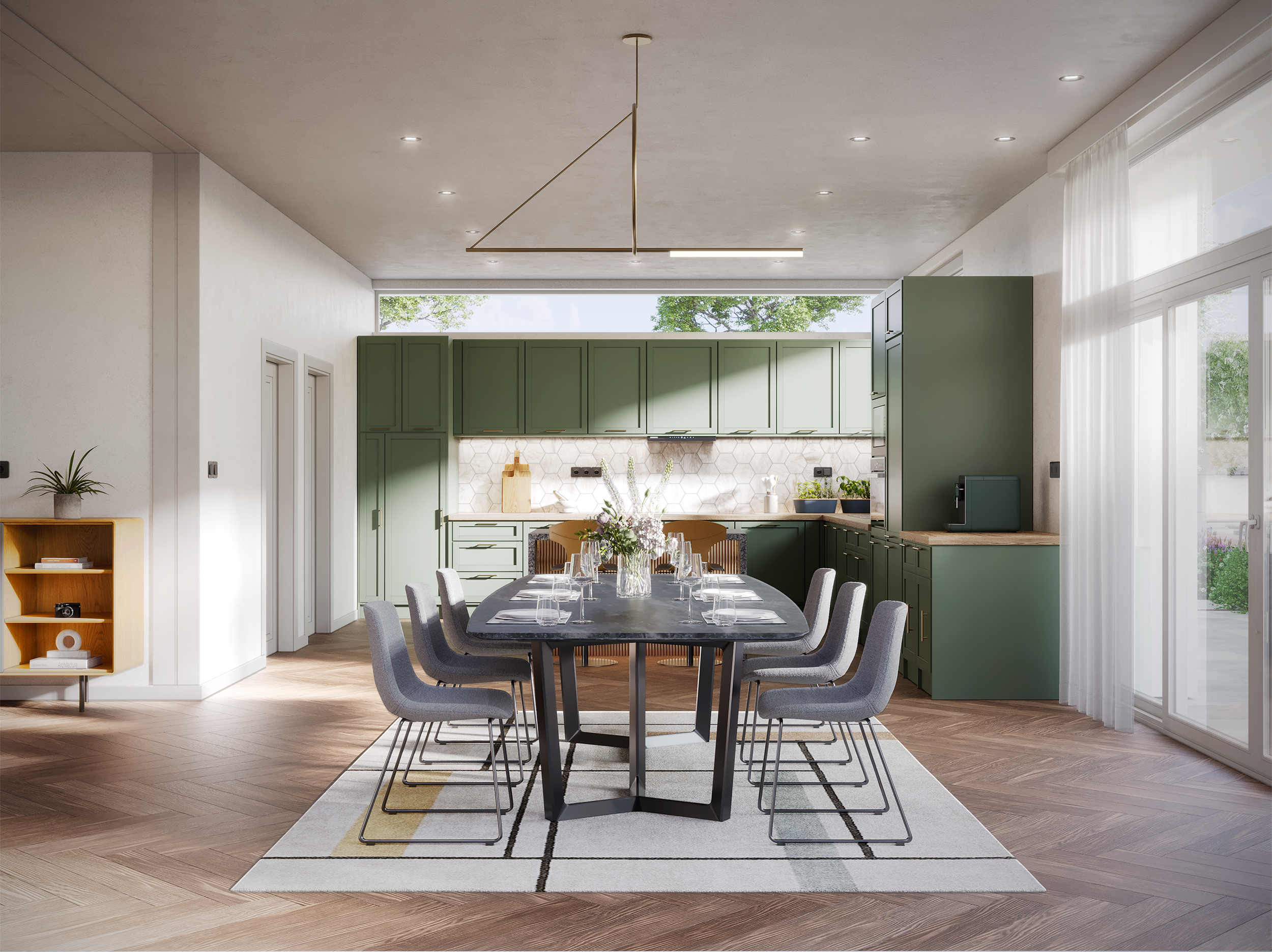Rather than replicating the original interior, the study introduces a distinct design direction while respecting the architectural framework.